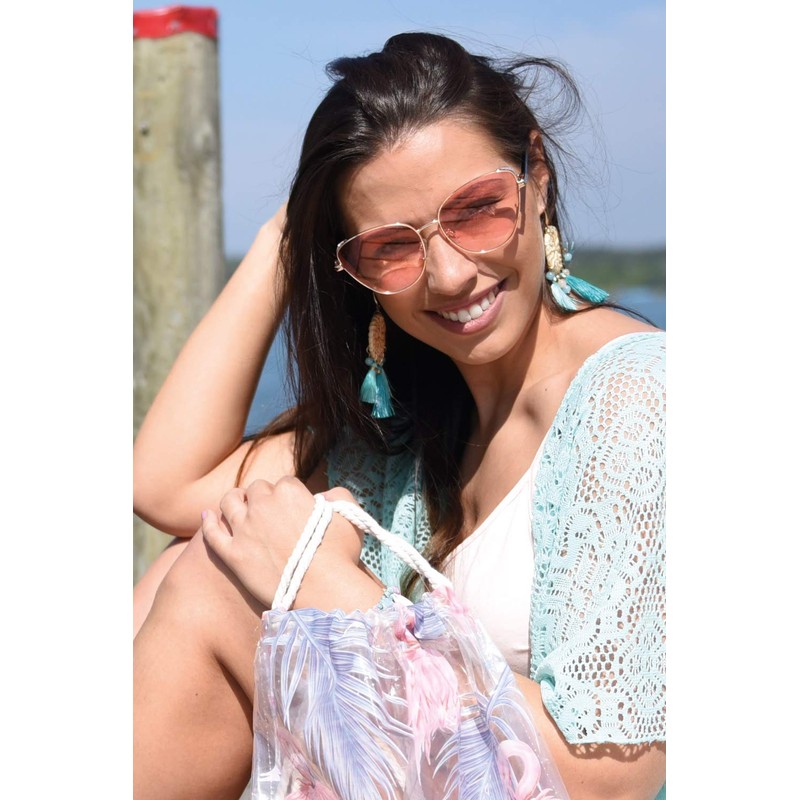 styleBREAKER Women's Cateye Sunglasses with Glitter Element, Metal Frame and Polycarbonate Lenses, Cat's Eye Shape, Retro Look 09020104, Frame gold / glass pink tinted