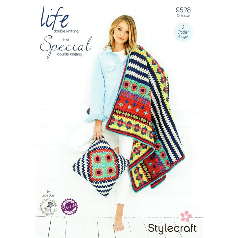 Stylecraft Double Knitting Pattern 9528-2 Crochet Designs for Boho Blanket & Cushion
