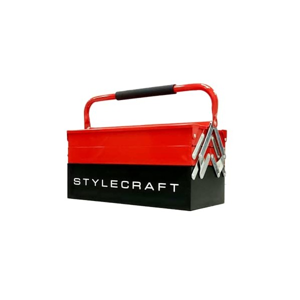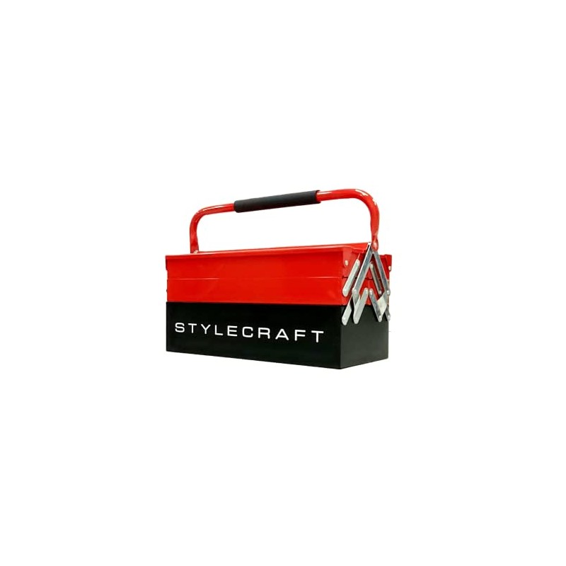 Introducing the 5-Tray Blade Runna’ metal hair appliance and tool box - the ultimate storage solution for your hair styling tools and accessories. Whether you're a professional barber or stylist, or simply someone who loves to keep their hair looking great every day, this tool box is a must-have. With its sleek and stylish design, the Blade Runna’ tool box is not only great for storing your clippers, trimmers, shavers, and other accessories, but it's also incredibly easy to clean. Simply wipe it down with a damp cloth and you're good to go. The bright red and matte black powder-coated finish, complete with the Stylecraft and Gamma+ branding on each side, gives this tool box a professional and stylish look. And with its galvanized steel connectors and rivets, it's built to last. The smooth glide trays, handle, and 2 lids with a center hole design for locking mechanism ensure easy access to your tools and accessories, while keeping everything secure and organized. Measuring 16-inch x 8-inch x 8-inch and weighing just under 10 pounds, it's the perfect size for carrying on the go or for travel. The comfort rubber grip handle is 8-inches long, making it comfortable to carry even with a full load. The 4 inner trays measure 3.5-inch x 16.5-inch and are 1 ¾-inch deep, allowing you to store all your blades, brushes, combs, and scissors, while the bottom inside tray measures 7.5-inch x 16.5-inch x 4-inch deep, giving you plenty of room for larger tools. Whether you're a professional or just someone who loves to keep their hair looking great, the 5-TRAY PROFESSIONAL metal hair appliance and tool box is the perfect storage solution for all your hair styling needs.