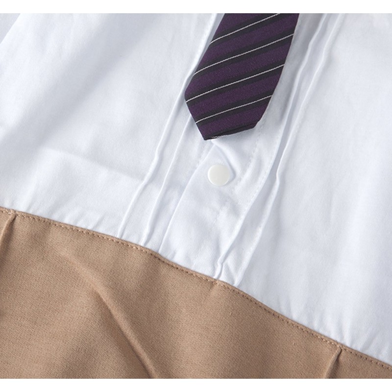 - Stylish romper with tie and chic semi formal jacket with cute elbow patches
