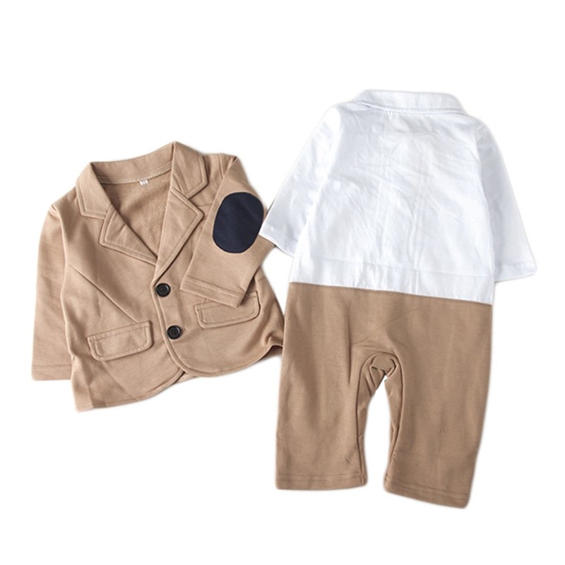 stylesilove Infant Toddler 2PC Boy Romper Suit with Elbow Patches Jacket (Khaki, 12-18 months/80)