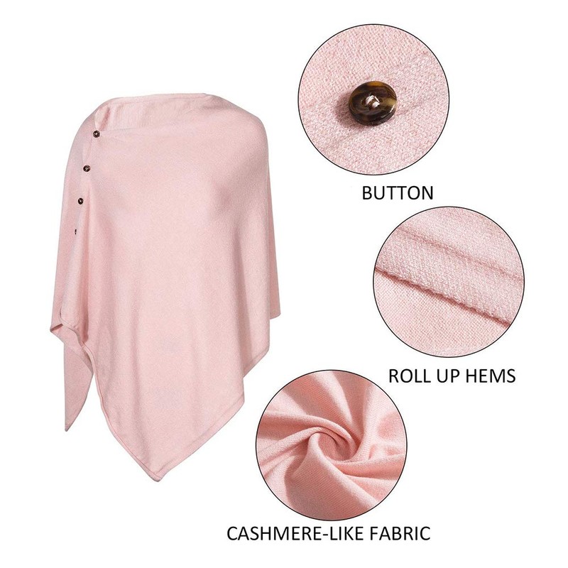 stylesilove Multi-Use Knit Nursing Shawl Poncho Adjustable Buttons for Breastfeeding Protection Nursing Cover Infinity Scarf (Pink)
