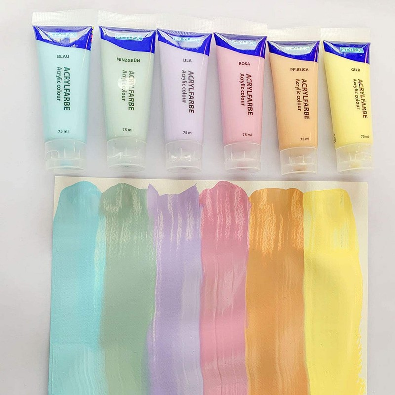 Stylex 28629 Pastel Acrylic Paints Set of 6 Tubes of 75 ml Water-based Matt High Opacity and Colour Strength Light Resistant Quick Drying and Waterproof Multi-Coloured One Size