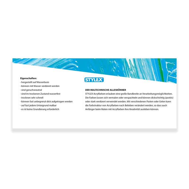 - Highly pigmented acrylic paint, water-based, for crafts and painting