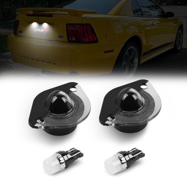 StylinPro License Plate Lights Lamp Lens, 6000K White LED Bulbs & Black Housing Replacement Compatible with Fo-rd 1994-2004 Mustang Pickup Truck Rear Step Bumper, Pack of 2