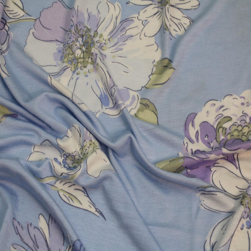 Stylish FABRIC 60" Wide Rayon Spandex Printed Jersey Stretch Knit Fabric by The Yard for Apparel, Clothing, Headbands, Accessories, Decorations, Maternity, and DIY Projects, Sky Blue/Lavender 3 Yards