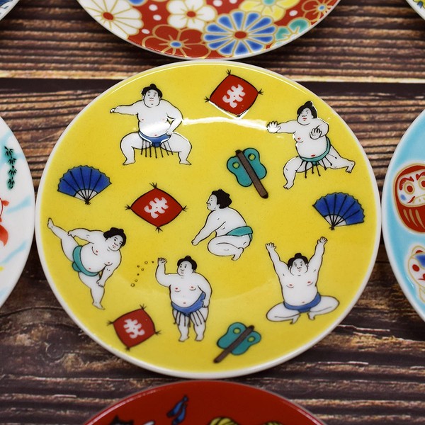 Stylish Kutani Ware Plate, Auspicious Bean Plate, Sumo Wrestling Ceramic, Small Plate, Japanese Tableware