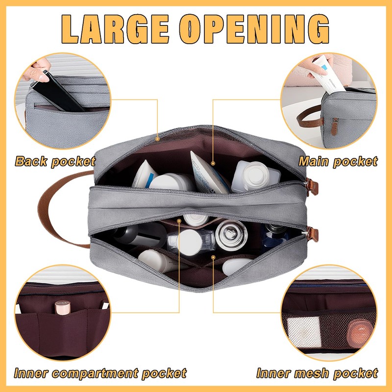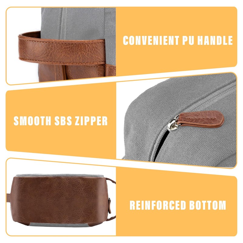 - Premium Durable Design – This wash bags for men combines a waterproof leather base for protection with a stylish canvas top for a fresh, modern look. Tough enough for travel, sleek enough for everyday.