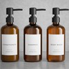 Stylish Shampoo and Conditioner Dispenser Set of 3 - Modern 21oz Shower Soap PET Bottles with Pump and Labels - Easy to Refill Body Wash Dispensers for an Instant Bathroom Decor Upgrade