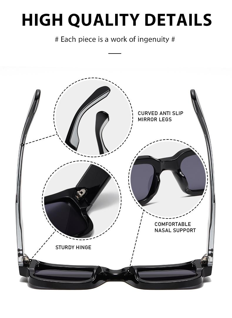 This sunglasses has a thick frame, which is super cool for both men and women. The widened temples have a contrasting color design, making it look more fashionable and stylish.
