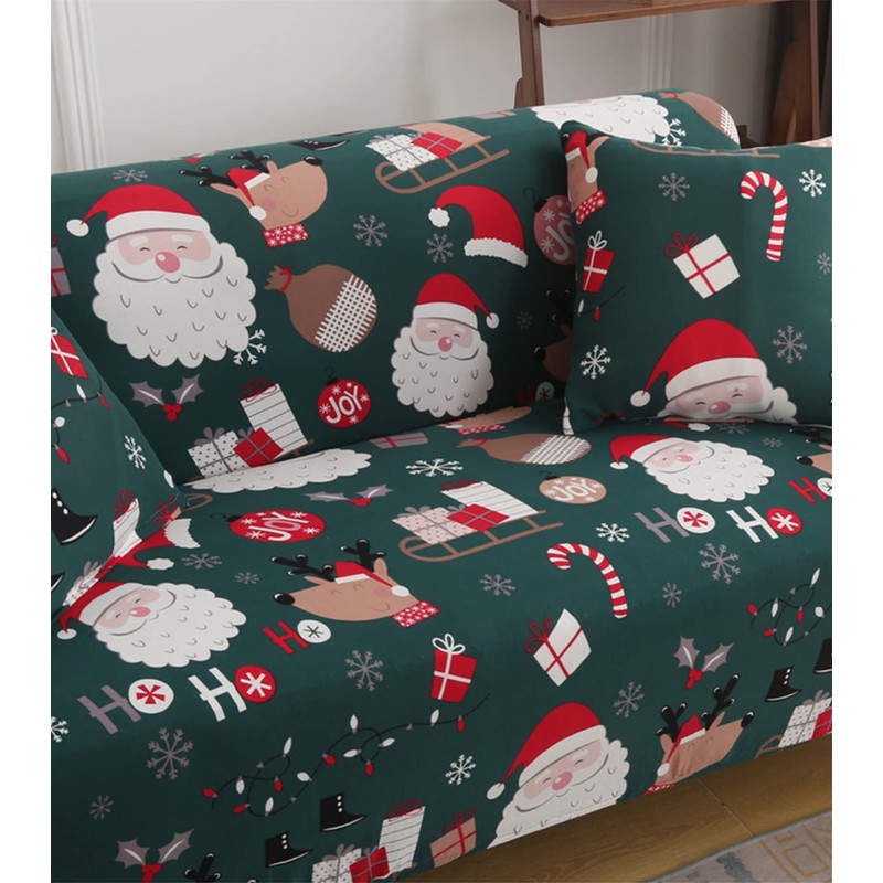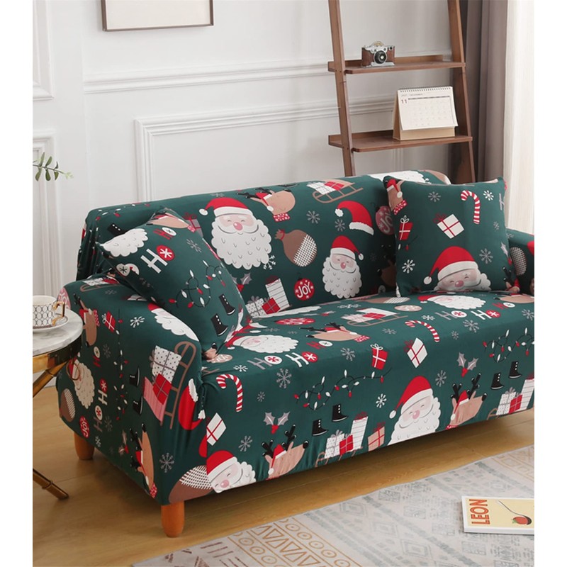 Stylishbed Christmas Sofa Cover Slipcover Soft Polyester Santa Claus Printed Sofa Protector with Elastic Bottom (3 Seater,190cm-230cm)
