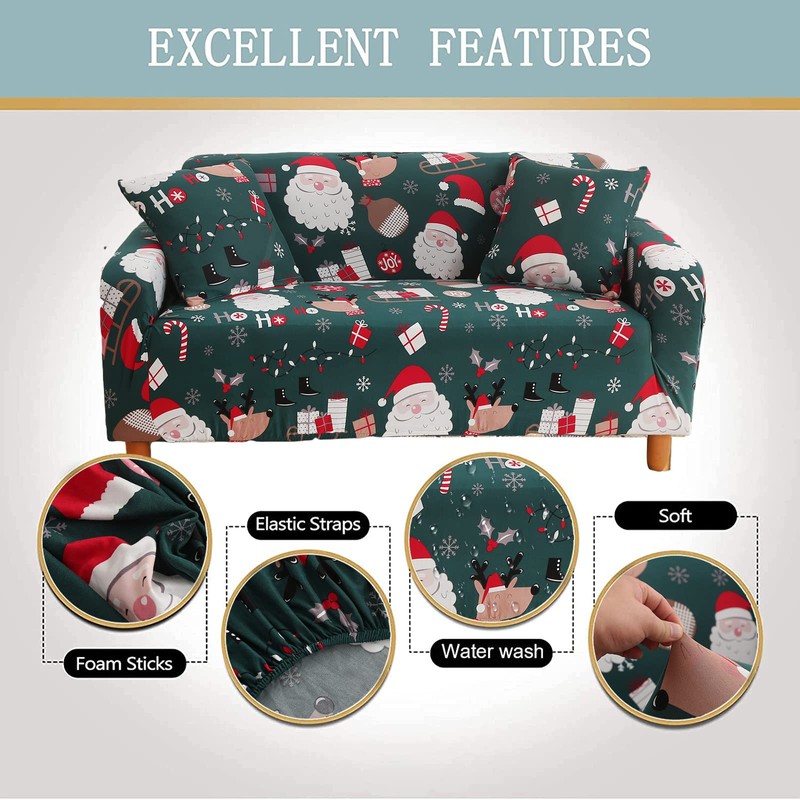 - ☃️Christmas Sofa Cover☃️Premium fabric - Highly elastic polyester spandex fabric provides the perfect wrap for your sofa. Complete with a non-slip elastic bottom, shoulder straps and premium non-slip foam sticks, the cover stays tight, won't wrinkle and won't shift after sitting or napping on the sofa.