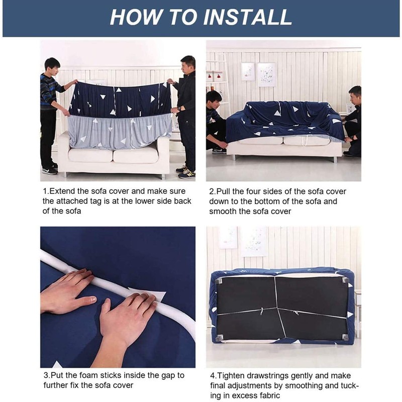 - ☃️Christmas Sofa Cover☃️Easy to install - slip the slipcover over the furniture, tuck in any excess fabric, tighten the bottom straps and insert the foam bar into the gap between the back and the sitting area for a seamless look. The elasticated bottom will keep the slipcovers firmly in place.