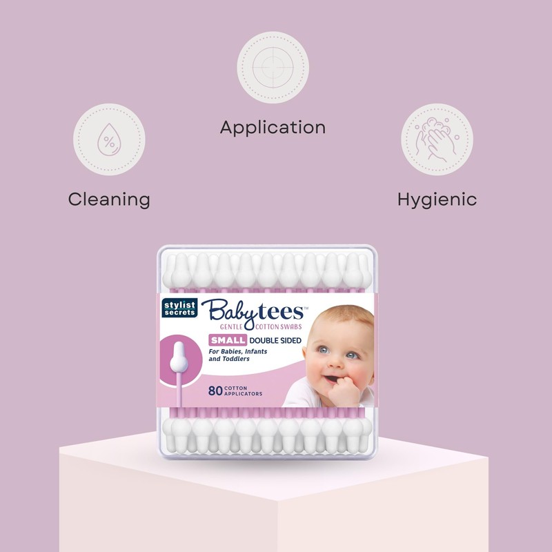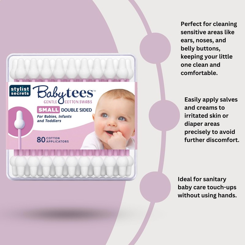 Stylist Secrets Classic Baby Tees - Small Gentle Double Sided Swabs Designed for Little Ears - for Babies, Infants & Toddlers - Dual Sided Pointed Buds - 80 Cotton Tips - 3 Pack