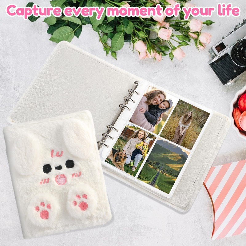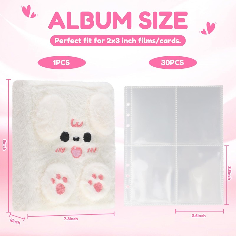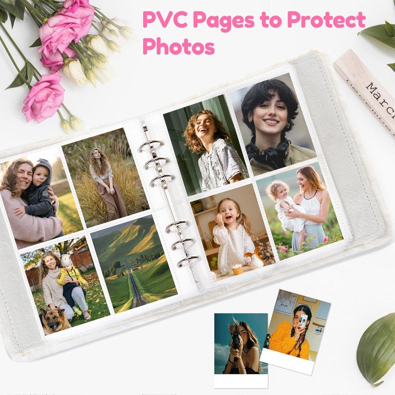 - Cute fluffy polaroid photo album is designed for pictures up to size 2.5”x3.4”. Each pocket size is 2.6"x 3.5", suitable for Fujifilm Instax mini LiPlay EVO 12 11 9 99 90 8+ 8 7S 70 50S 40 26 25 instant film cameras, Mini Link /share SP-1 printer, Polaroid Snap / Snap Touch / PIC-300 Camera / zip 2x3 Printer, Kodak Mini Shot 2/ Printomatic Camera / Mini / Mini 2 HD Printer, Prynt Pocket Printer, Credit cards, Name cards and so on.