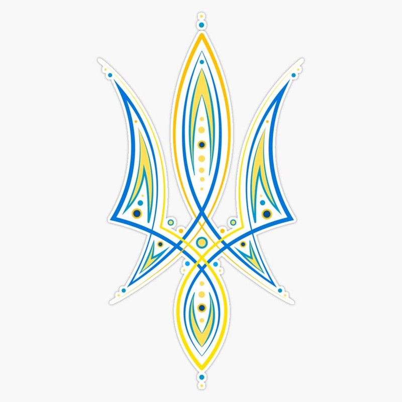 Stylized Ukrainian Tryzub Pinstripes Bumper Sticker Vinyl Decal 5"