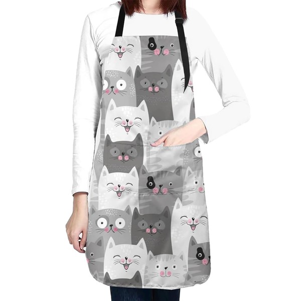 Stymora Adjustable Cooking Aprons for Women With Pockets, Cute Cat Kitchen Aprons for Chef Baker Cat Lovers