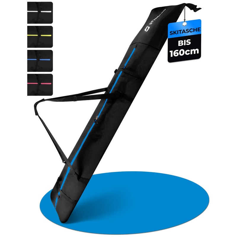 STYNGARD Andermatt Children's Ski Bag with Roll Top up to 160 cm – Children's Ski Bag Made of Robust Material with High-Quality Zippers – Ski Bag Model Andermatt, black-blue, Polyester bags