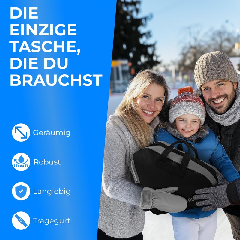 - Shoes out, from the ice - Our robust ice skate bag fits any shoe, offers flexible comfort thanks to the adjustable strap and makes transport much easier