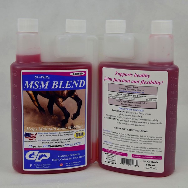 - JOINT MOBILITY SUPPORT: SU-PER MSM blend liquid provides support for stiffness and discomfort in horses. It aids normal response to inflammation associated with physical activity, making it particularly useful for managing joint soreness and stiffness.