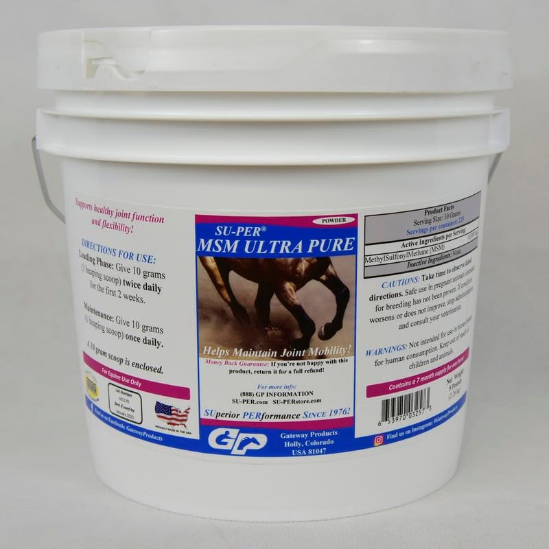 - JOINT MOBILITY SUPPORT: SU-PER MSM ultra pure provides support for stiffness and discomfort in horses. It aids normal response to inflammation associated with physical activity, making it particularly useful for managing joint soreness and stiffness.