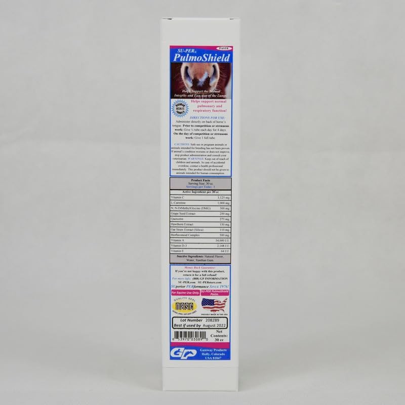 - PULMONARY SUPPORT: SU-PER PulmoShield paste is specifically formulated to aid in maintaining the normal integrity and function of the lungs, providing crucial support for equine athletes just prior to competition or training.