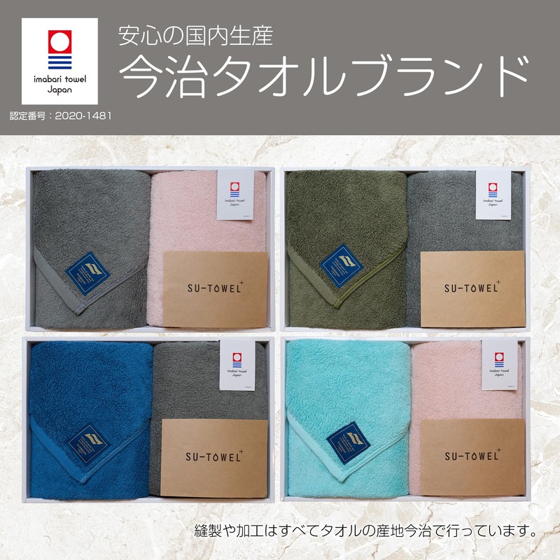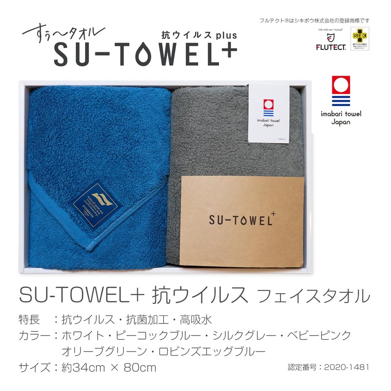 - SU-TOWEL+ is a towel series that has acquired Imabari Towel Mark certification, with an anti-virus and antibacterial treatment that lasts even after washing. All sewing and processing are done in Japan and we have checked the safety of processing agents. After washing, shake it slightly and stand the pile and then dry it to dry. The fluffy volume will last for a long time
