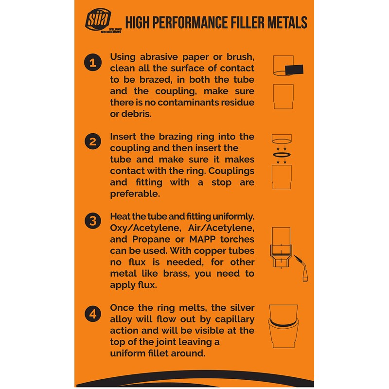 - Check Product description for a guide to brazing with SÜA 15% Brazing Rings.
