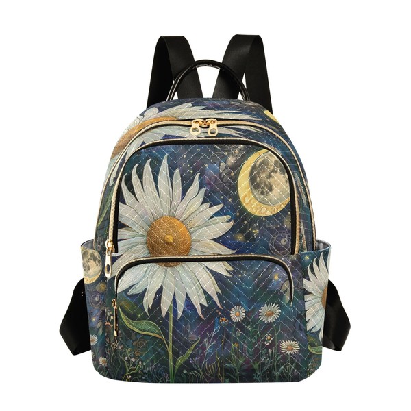 SUABO Daisy Flower Moon Backpack Purse Ladies Rucksack Travel Shoulder Bag Casual Daily Backpack