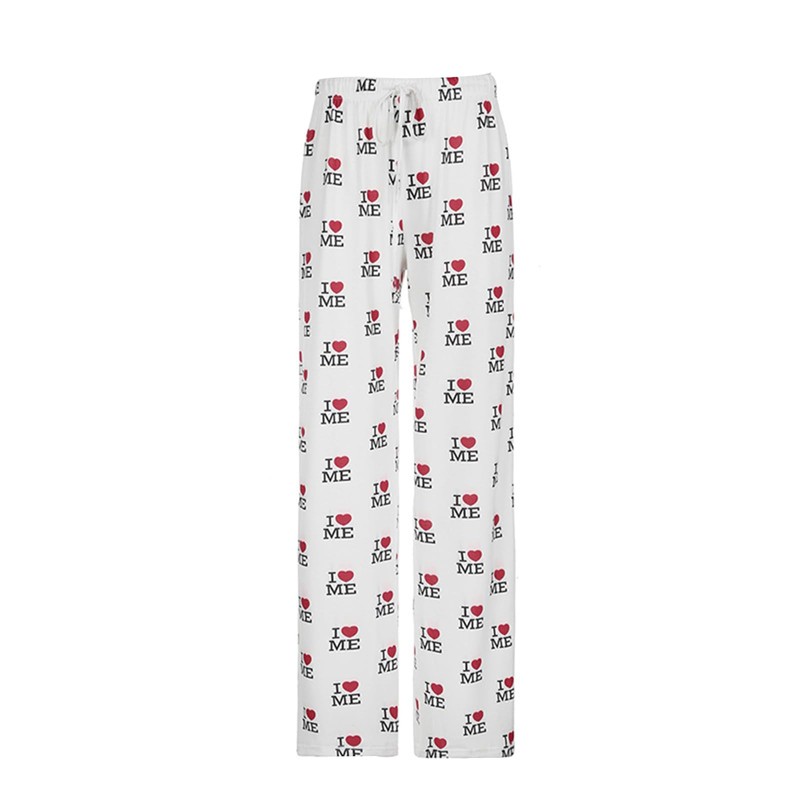 - Design: Women's spring aummer pajama bottoms; Heart letter print drawstring waistband wide leg pants; Woman comfy pajamas pants