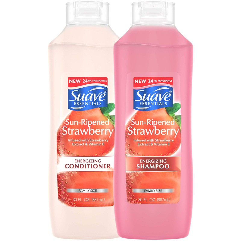 • Suave Essentials Sun-Ripened Strawberry Conditioner gently conditions hair