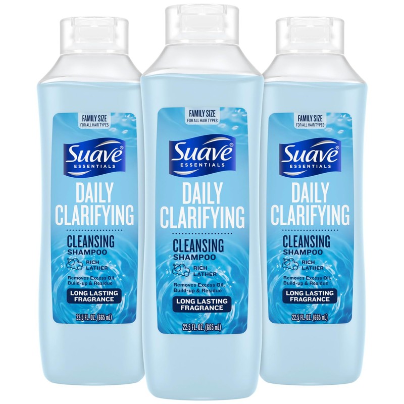 Suave Clarifying Shampoo, Family-Size 3-Pack – pH-Balanced & Hypoallergenic Daily Deep Cleansing Shampoo for Normal to Oily Hair, 22.5 Oz Ea