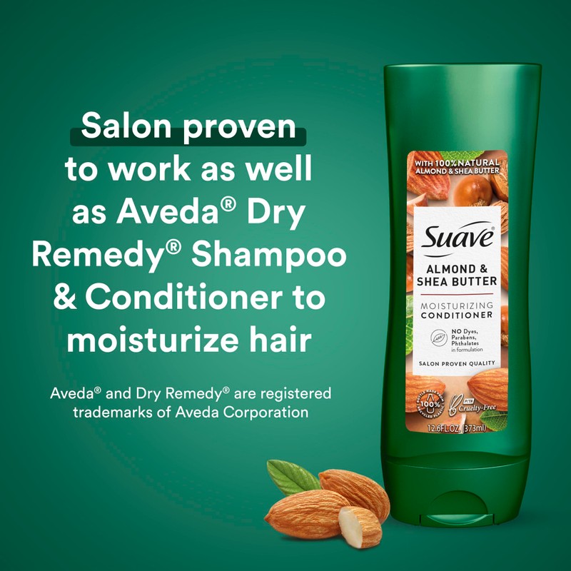 Suave Almond & Shea Butter Moisturizing Shampoo and Conditioner work to promote healthy hair, shiny and free of damage.At Suave, we have been helping America live beautifully since 1937, providing families worldwide with safe, high-quality, everyday personal care products designed to bring joy with every use. This is why you can still find us in 1 out of 2 US households (and counting)!Our mission is to make gold-standard quality attainable to all, so everyone can look, smell, and feel good daily. We believe everyone deserves access to beauty that sparks happiness for the mind, body, and spirit.