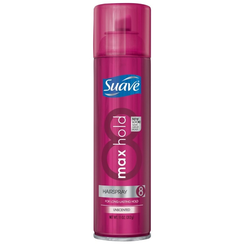 - Suave Max Hold Unscented Hair Spray has a vitamin and protein-enriched formula