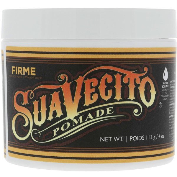Acerca de este artículo FIJACIÓN FUERTE: Esta es una gran pomada para peinados como; copetes, pompadours y side parts. ¡Cualquier peinado se puede lograr con esta pomada! Si tienes un cabello más fácil de peinar, echa un vistazo a nuestra Pomada Original de fijación media. SOLUBLE EN AGUA: Esta pomada se lava fácilmente, solo con agua y no se necesitan shampoos y jabones especiales. Tras lavar el cabello no queda graso ni sucio. Deja un cabello sano y limpio después de enjuagar. Sin productos químicos agresivos que resecan o dañan el cuero cabelludo. PEINA CON FACILIDAD: Peina tu cabello sin dificultad. Pomada Suavecito Firme (Fuerte) se aplica con gran facilidad y proporciona una fijación fuerte y resistente utiliza un peine o cepillo para mayor flexibilidad y definición en tu peinado. BRILLO MODERADO: Esta pomada de brillo moderado, proporciona una consistencia cremosa y saludable a tu cabello. Aplica sobre cabello húmedo para obtener más brillo o sobre cabello seco si prefieres menos. COMUNIDAD DE CONFIANZA: Inspirándonos en hombres y mujeres que aman las motocicletas, los autos personalizados y los tatuajes, sabemos lo importante que es ganarse su confianza y lo hicimos. Suavecito se enorgullece de su comunidad y calidad. Hecho 100% en Estados Unidos