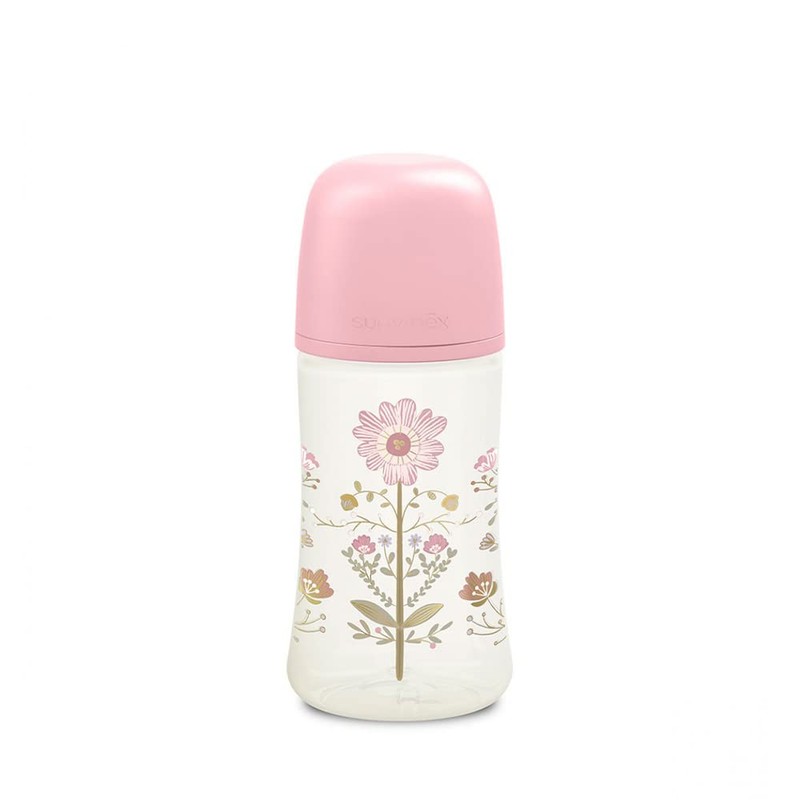 • The 270ml bottle is perfect for children aged 3 months and up. With symmetrical SX Pro medium flow teat. Its opening allows the passage of all types of medium density liquids. The new symmetrical SUAVINEX SX Pro teat is the ultimate step towards a more natural diet. Designed to respect the development of the child's oral cavity. The symmetrical SX Pro teat ensures that the tongue stays in the same natural position as the baby sucks on the breast.
