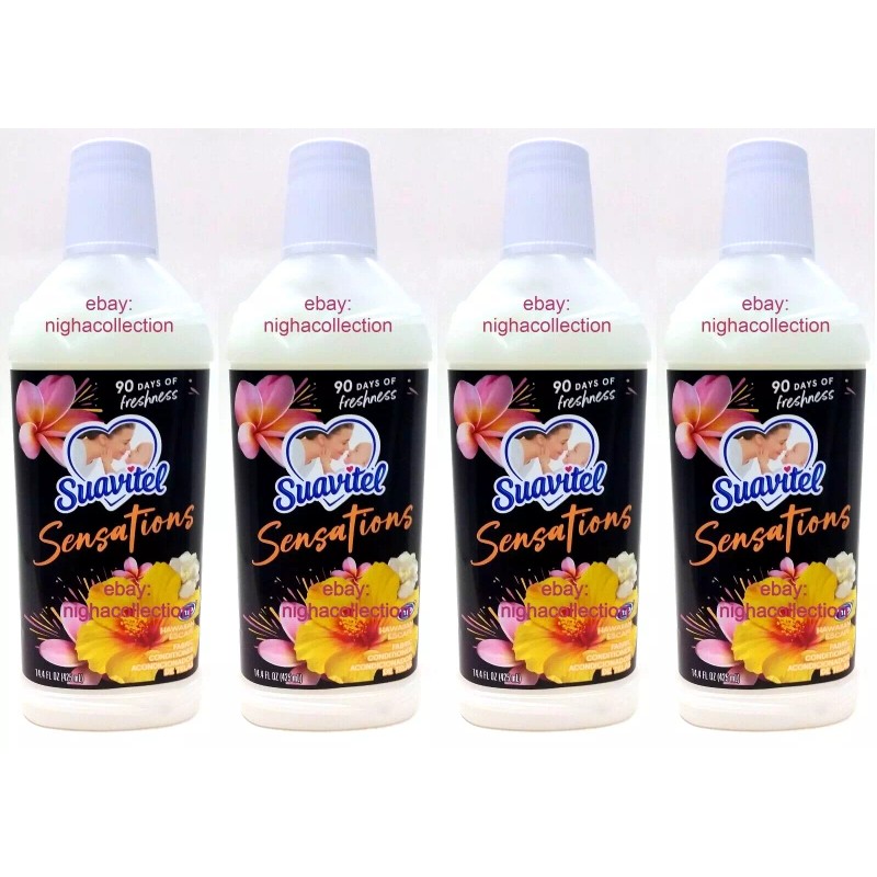 LOT 4 BOTTLES SUAVITEL SENSATIONS FABRIC CONDITIONER HAWAIIAN ESCAPE SCENT 14.4 oz Ea