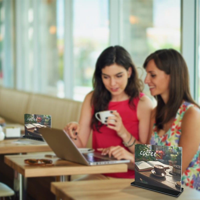 - Improved visibility: the table stand has a T-shaped design that allows it to stand upright and ensure maximum visibility and readability. Whether you are presenting a menu, price list or promotional material, this card holder will attract the attention of your target audience.