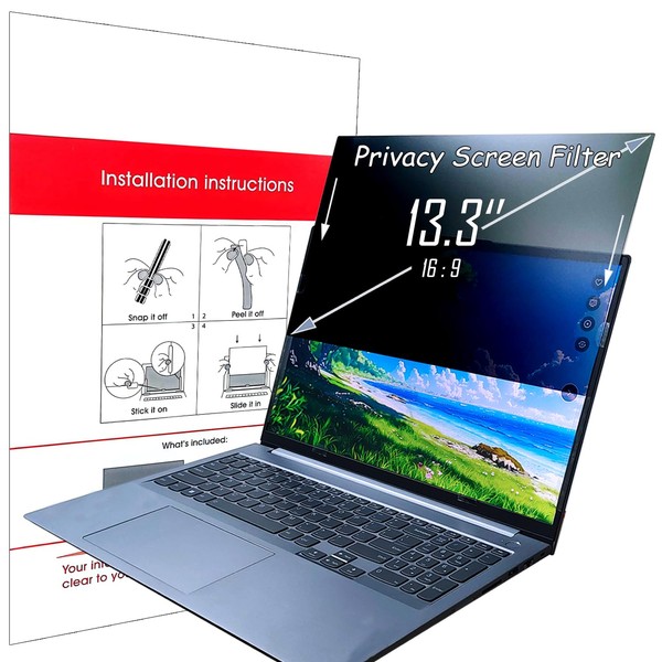 - [Compatible models] This 13.3-inch privacy screen filter is suitable for most laptop models and portable displays with 16:9 aspect ratio. Length :11.57 inches (294 mm), height :6.5 inches (165 mm). Please confirm the length and height of your computer screen before ordering