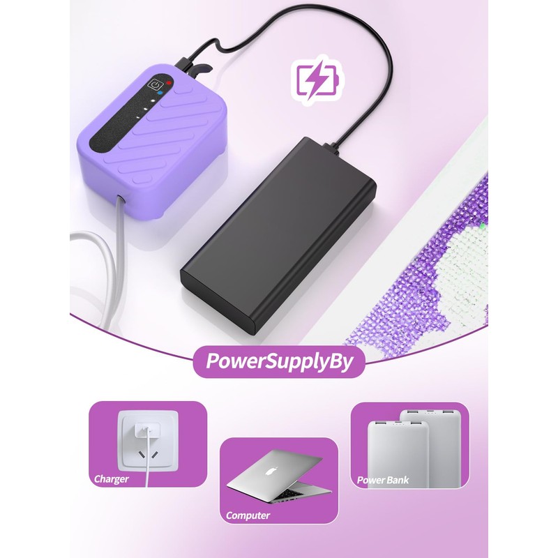 • Complete Set for an Enjoyable Experience: The package includes everything you need: 1 × Micro Vacuum Pump, 1 × Diamond Painting Pen, 1 × Silicone Hose, 1 × USB Cable, 1 × Filter, and 1 × Instruction Manual. All you need for a smooth diamond painting session.