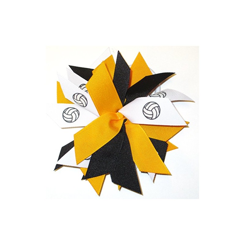 Sublimation Specialties Volleyball Pom Hair Bow - Made in The USA, Black/Gold, White Pony Band