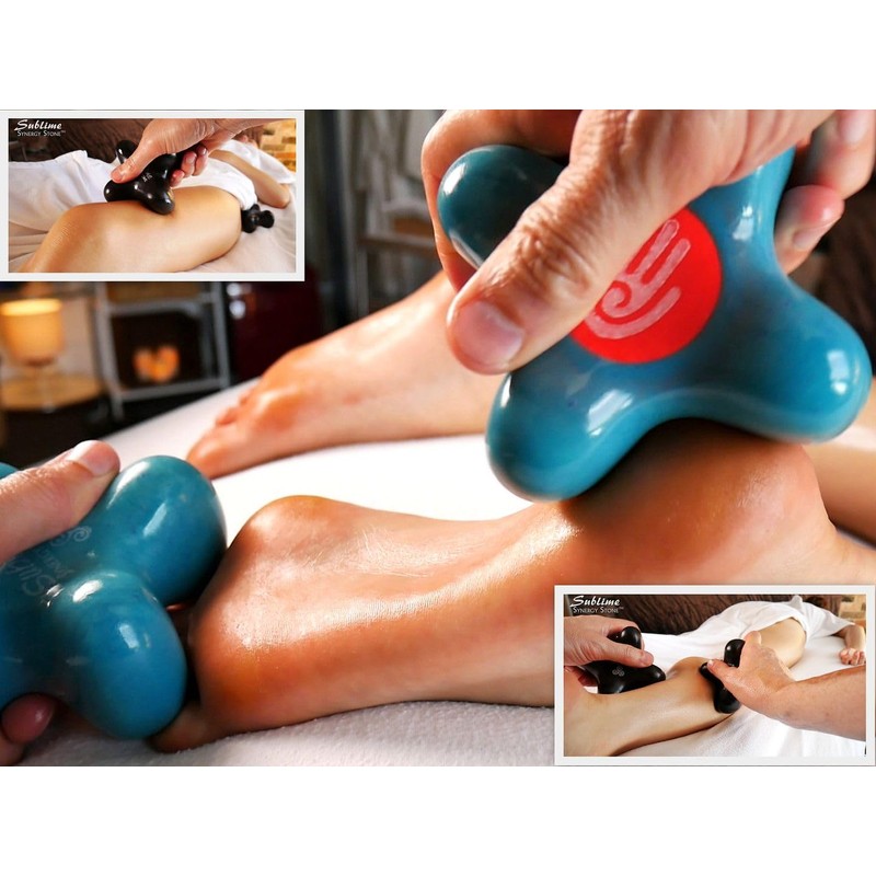 - X-SHAPED WITH 4-T-KNOBS that Knead, Sculpt, Twist and Rake with ease. SUBLIME is excellent at twisting, spreading and kneading muscles into balance. The Ultra-Smooth surface enables you to massage over clothes without oil, or against the skin with oil. SUBLIME holds an obvious advantage over rounded stones that are difficult to hold and maneuver.