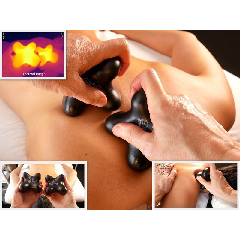 The SUBLIME Basalt SYNERGY STONE Hot Stone Massage Tool features 4 T-shaped knobs and 4 soothing saddles that Knead, Sculpt and Rake muscles toward optimal health. The Smooth yet grippable Matte surface works best against the skin with oils or creams. (Not for use over Clothes) This X-Shape stone tool grips so well it virtually becomes an extension of your own hand. Excellent at twisting, spreading and kneading muscles into balance. Blending the heat of Hot Stone Massage with focused therapeutic techniques SUBLIME holds an obvious advantage over natural rounded stones that are difficult to maneuver.