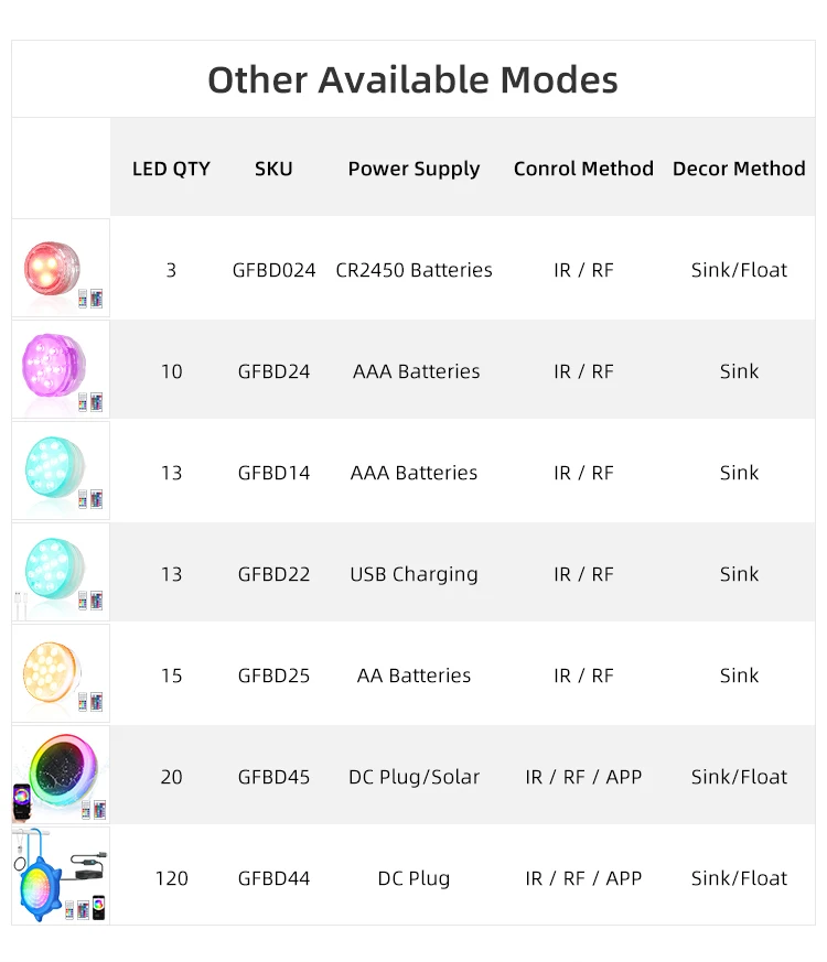 - Model Number: GF-A-UNDERWATER POOL LIGHTS