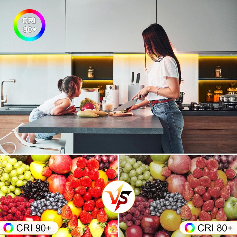 - Super bright effect for easy installation: 5 mm wide COB strips, and you can install it in any gap. High colour rendering index CRI>90+, 180 degree beam angle, ensure a better lighting experience. The brightness effect of the light strip can be completely comparable to that of the neon light strip