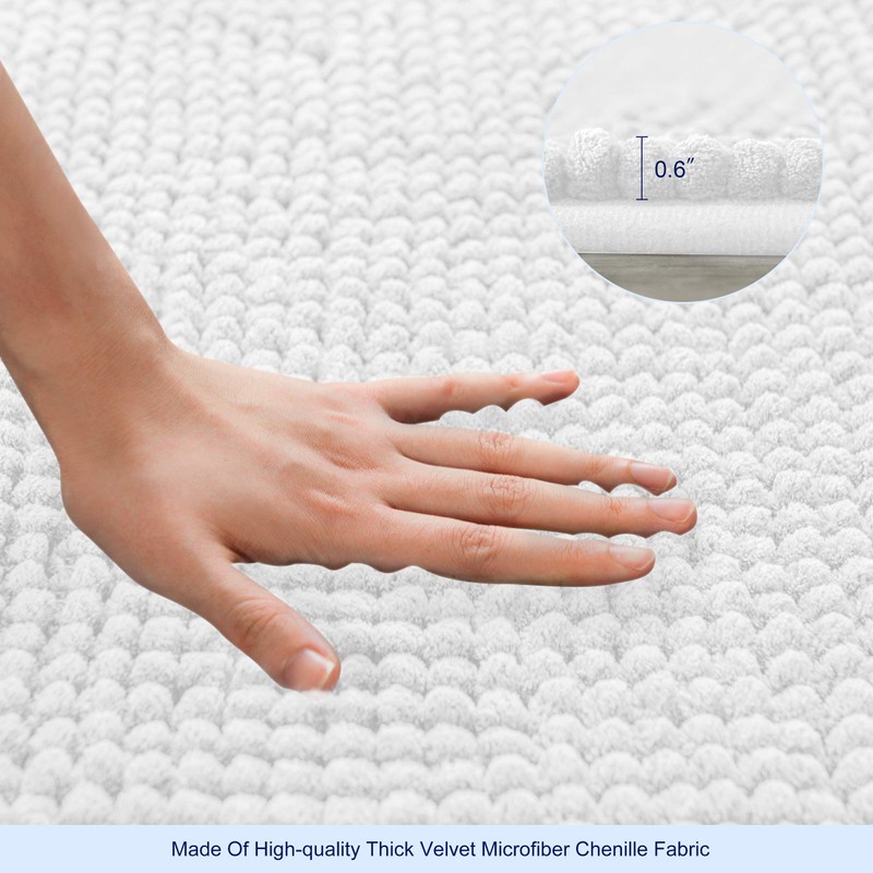 subrtex Bathroom Rugs Chenille Soft Short Plush Bath Mat Non-Slip Water Absorbent Shower Mat Quick Dry Machine Washable(White,20" x 32")