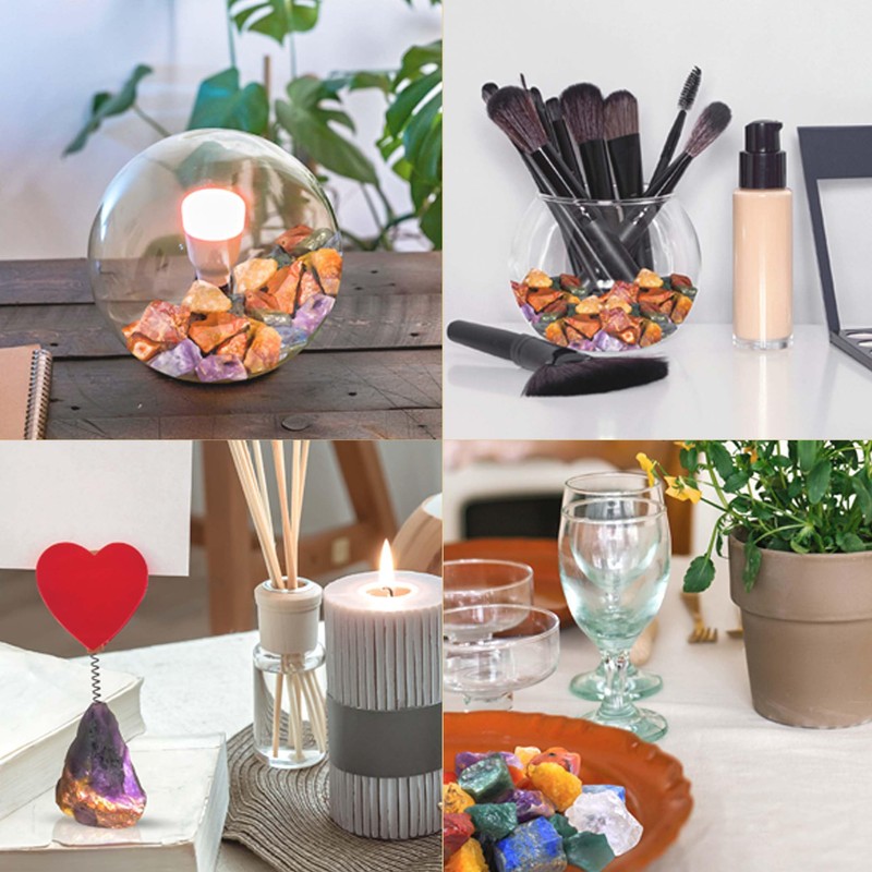 - Rocks With Gemstones Inside Decoration - Due to its natural properties and powerful energy, raw crystals provides varieties of advantages. One of the rough crystal stones advantage is through decoration. You can use these real crystal chakra stones for your home decor such as lucky stones, table decor, spiritual decor, wiccan decor, chakra decor, meditation decor and much more.