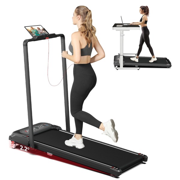 - 【Compact and Foldable Design with Transport Wheels】This portable treadmill features a space-saving foldable design with a folded-down size of 49.4 x 22.05 x 3.94 inches, making it ideal for home gyms, apartments, and offices. The built-in transport wheels make it easy to move and store, making it perfect for small spaces and tight corners