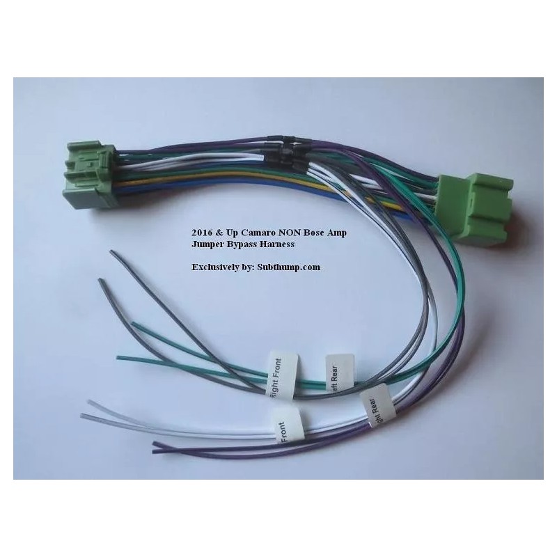 Our dual purpose jumper/bypass (6G-NB-JBP) amp integration harness is perfect for adding additional Amplfiers such as a subwoofer amp to your Camaro's non bose amp. However this versitile harness can also be easily converted into a 'fark' or amp bypass harness that can be used to power the car's current speakers from a new multi-channel aftermarket amp. This harness is a great piece for anyone looking to upgrade the audio in their non bose camaro.