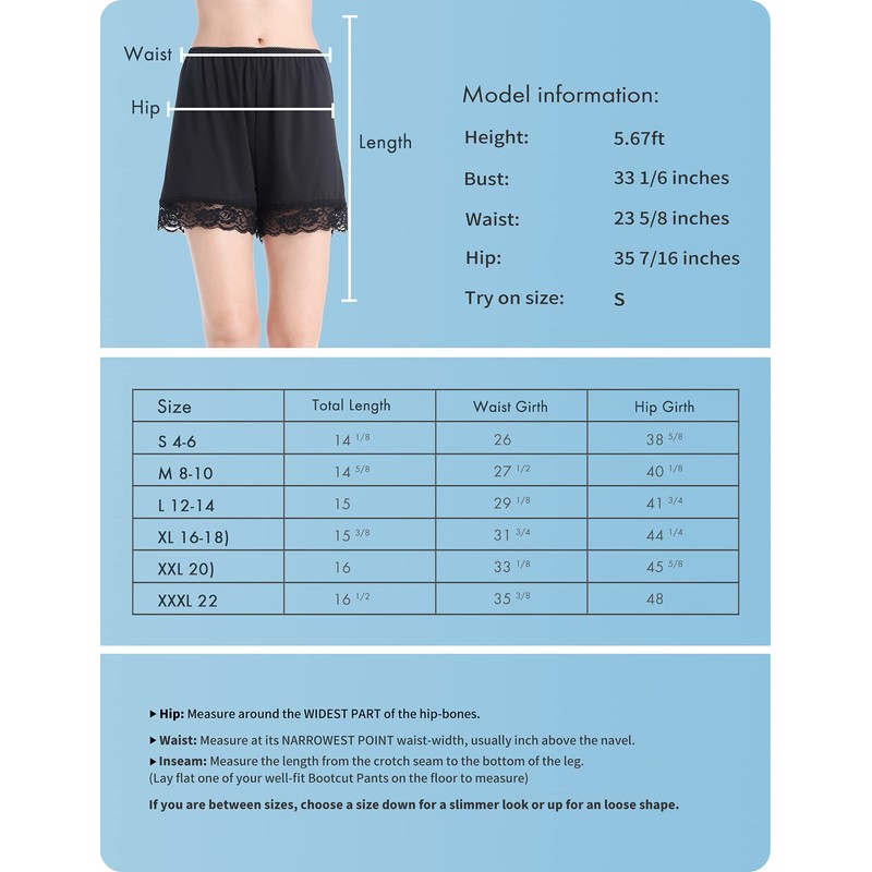 - 【Lace Edge Slip Shorts】The length of the culotte shorts for women stops above the knee. Lace hemline design make the womens culotte slip more charming and flattering.It also shapes your legs, hiding the fat on your inner thighs.